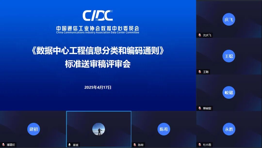 2025年4月17日,由中国通信工业协会数据中心委员会组织,中国长江三峡集团有限公司牵头主编的《数据中心工程信息分类和编码通则》标准送审稿评审会顺利召开。评审会由评审专家组组长中国通信工业协会数据中心委员会理事兼副秘书长潘建初主持。