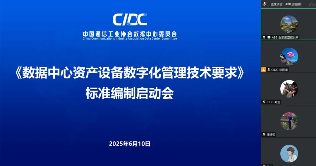 根据整体工作安排,2025年6月10日下午,由中国通信工业协会数据中心委员会(CIDC)组织的《数据中心资产设备数字化管理技术要求》标准编制启动会在线上成功召开。来自ABB(中国)有限公司、中科院建筑设计研究院有限公司、三峡长电大数据科技(宜昌)有限公司、宁夏东数西算产融研究院、西华大学、联想(北京)有限公司、恒华数字科技集团有限公司、成都哲晟嘉科技发展有限公司、双登集团股份有限公司、润建股份有限公司、博浩数据服务有限公司、优刻得科技股份有限公司、联通(广东)产业互联网有限公司、潍柴动力股份有限公司、浙江莲花紫星智算科技有限公司、深圳市共济科技股份有限公司、北京数字科智技术有限公司、中世顺科技(北京)股份有限公司等单位20余位专家代表出席会议。本次会议由中国通信工业协会数据中心委员会副秘书长刘莹主持。