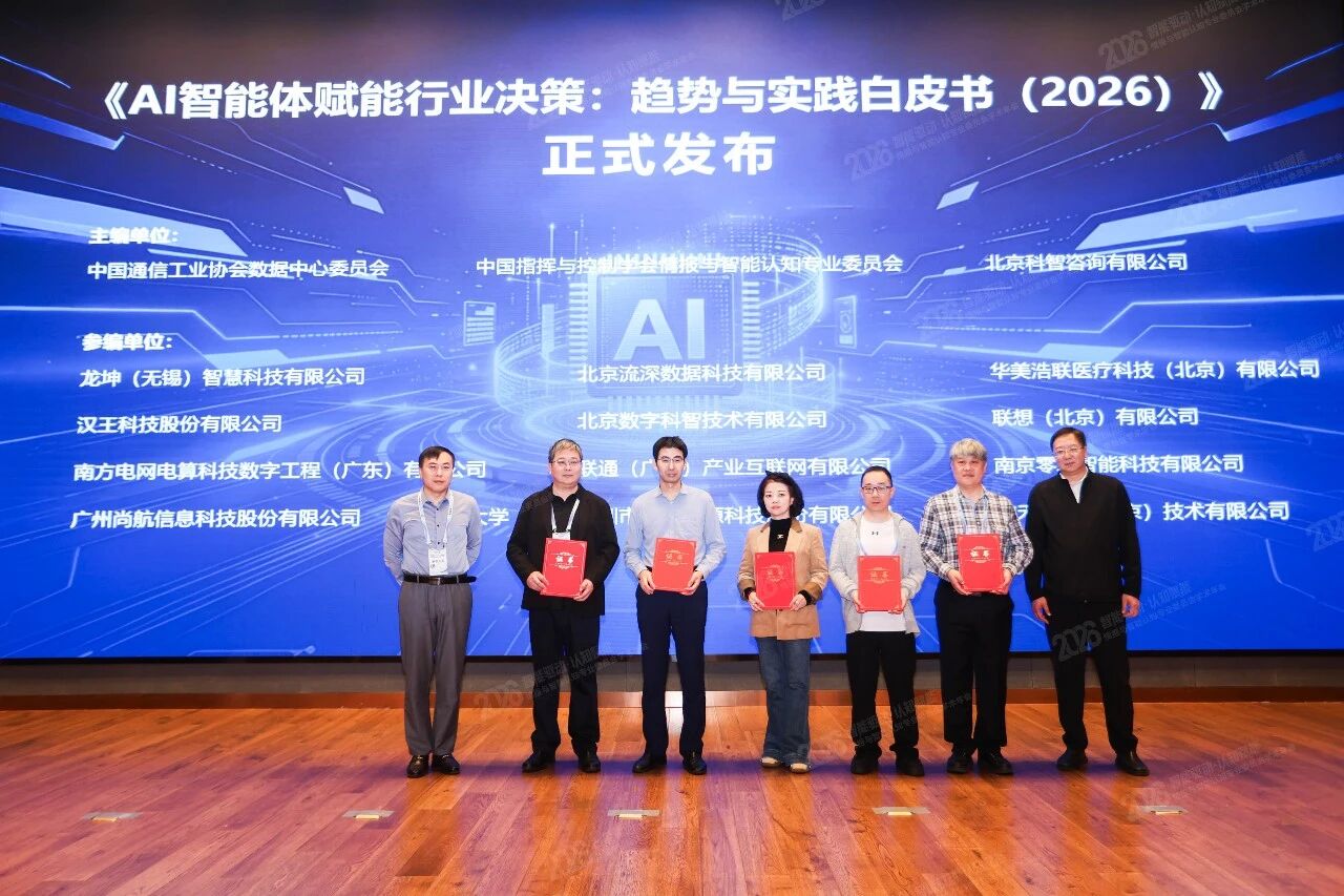 2026年4月24日,以“智能驱动・认知赋能”为主题的2026情报与智能认知专委会学术年会在南京大学召开。会上,由中国通信工业协会数据中心委员会、中国指挥与控制学会情报与智能认知专业委员会及科智咨询联合主编的《AI智能体赋能行业决策:趋势与实践白皮书(2026)》(以下简称“白皮书”)正式发布。